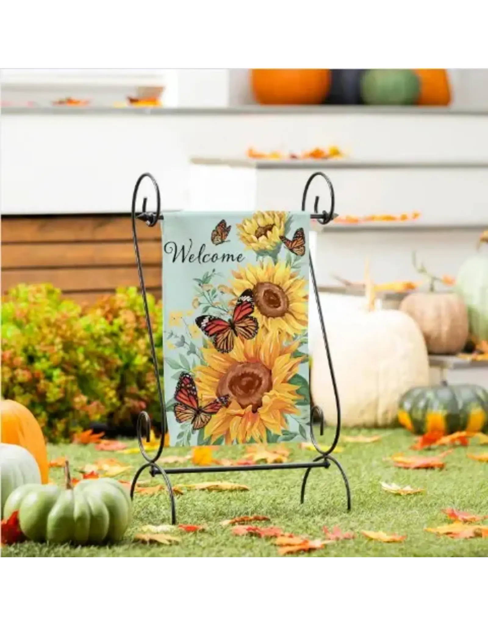 Measures 12.5" x 18" and fits standard garden flag poles and stands, sold separately.